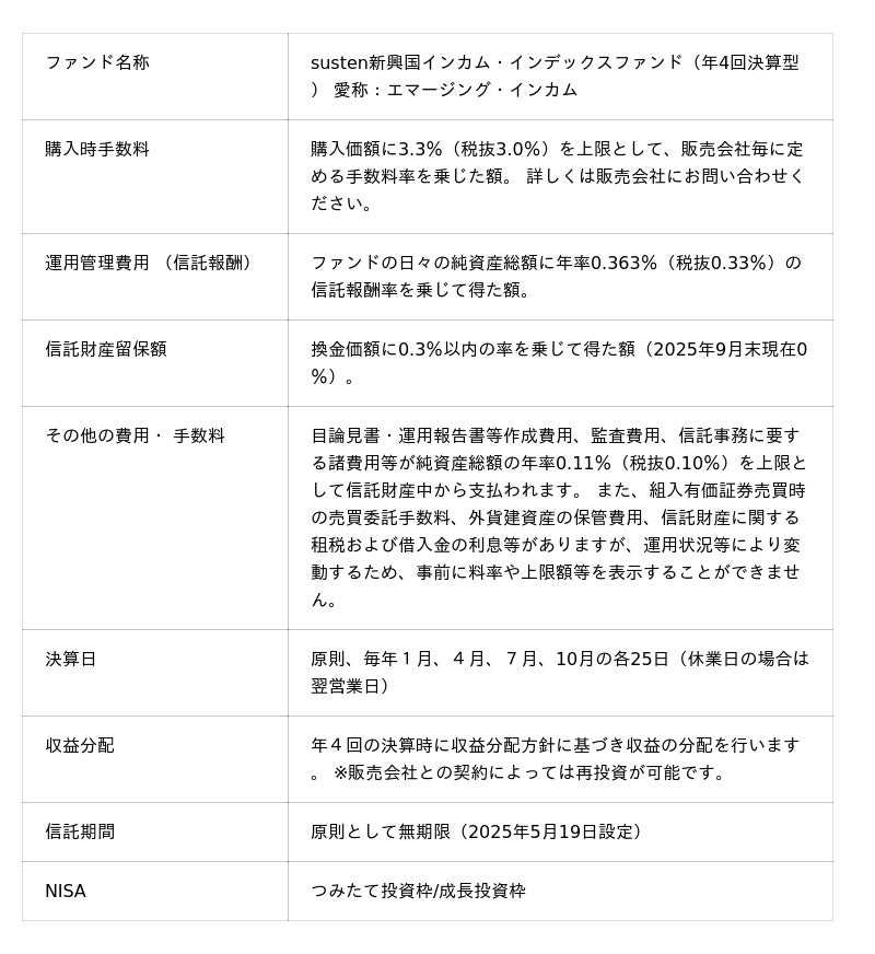 ご参考:「susten新興国インカム・インデックスファンド(年4回決算型)」の状況(2025年10月27日現在)