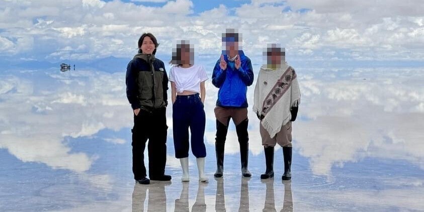 ※写真左端:代表・戸部(撮影地:ボリビア/ウユニ塩湖)