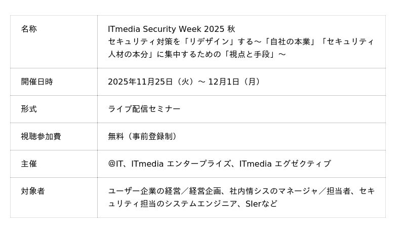 「ITmedia Security Week 2025 秋」概要