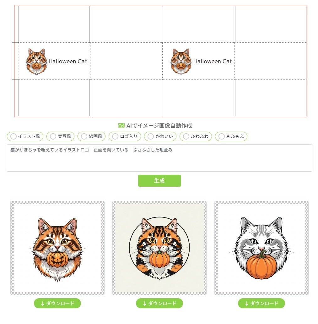 これまで、イラストレーターなどのデザイン制作ソフトをお持ちでない方にもオリジナルデザインダンボールを作成いただけるよう、テンプレートやスタンプを使って簡単にデザインダンボール箱が作れる機能を追加してまいりました。そしてこの度、AIが自動でデザイン画像を提案・生成できるようにデザインツールをアップデートいたします。生成されたフルカラーの画像をアースダンボールの「ミラプリ」なら版代0円でフルカラー印刷が可能です。そのため、生成した画像をそのまま印刷データとしてご利用いただけます。