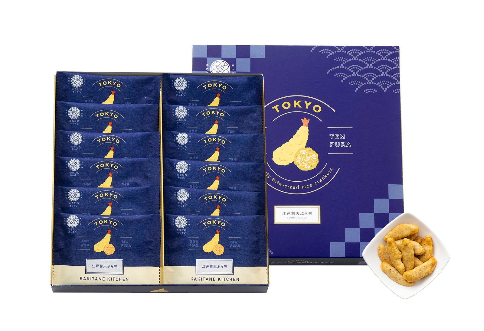 発売から1年、「おうちで食べたい」「気軽にプレゼントしたい」など、たくさんのお客様の声をいただき、新たに『かきたね 江戸前天ぷら味 5袋』をラインナップ。出汁感と海老の風味をUPし、さらに美味しくなって新登場いたします。