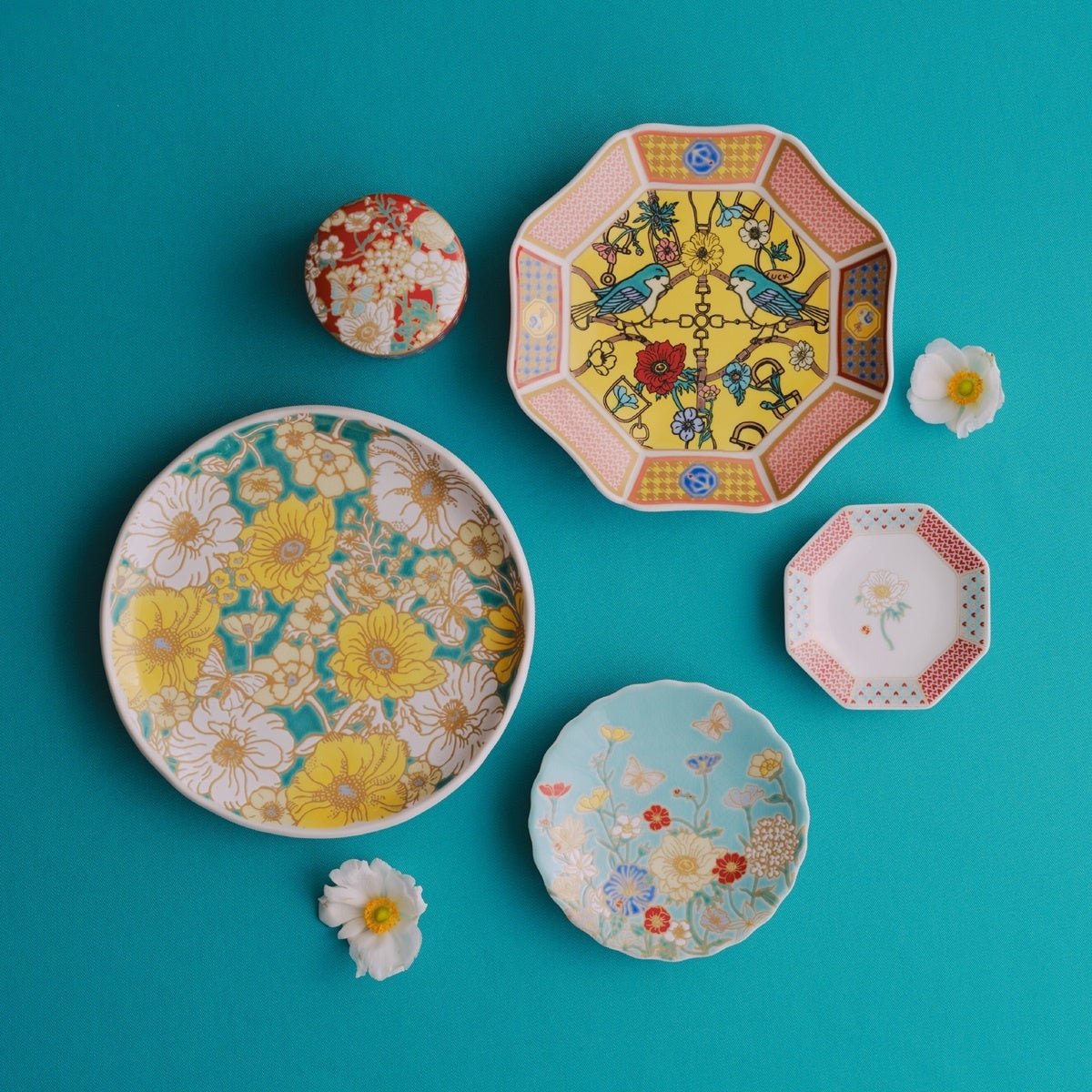 大皿九谷焼 ¥5,940、珍味入れ九谷焼 ¥3,300※一部店舗・公式オンラインストア限定、小皿九谷焼 ¥2,200、中皿九谷焼 ¥4,840、豆皿九谷焼 ¥1,650