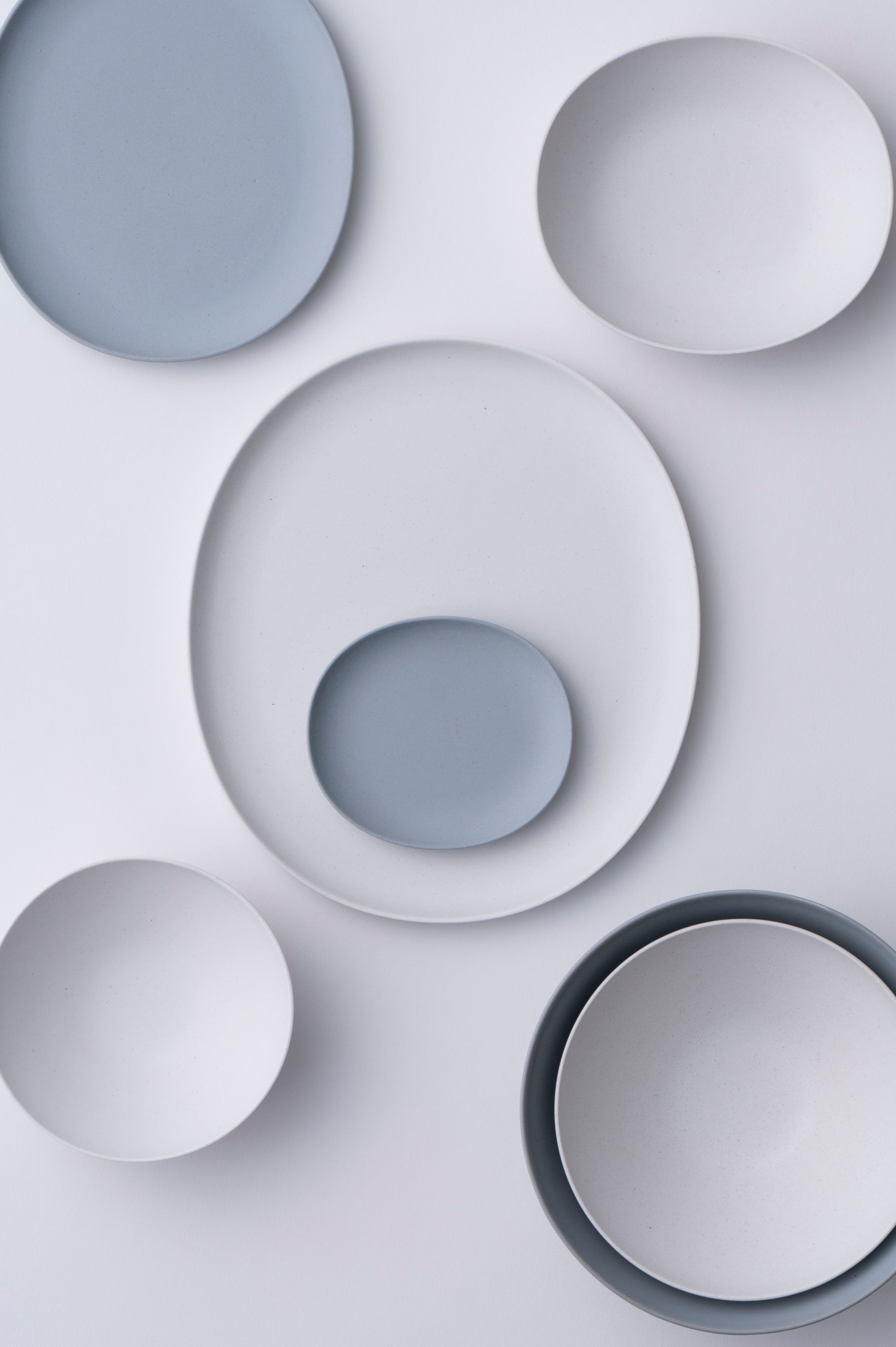 「uzra(うづら)」は、環境配慮型の新素材「晟土(せいど)」を用いた肥前吉田焼の器シリーズです。釉薬を使わずに焼成でき、CO2排出量を約40%削減。不良とされがちな鉄粉も意匠として取り入れ、高い良品率を実現しました