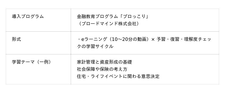 こうした課題認識から、短時間・反復型で基礎から実生活に直結するテーマまで段階的に学べる金融教育プログラム「ブロっこり」を導入しました。