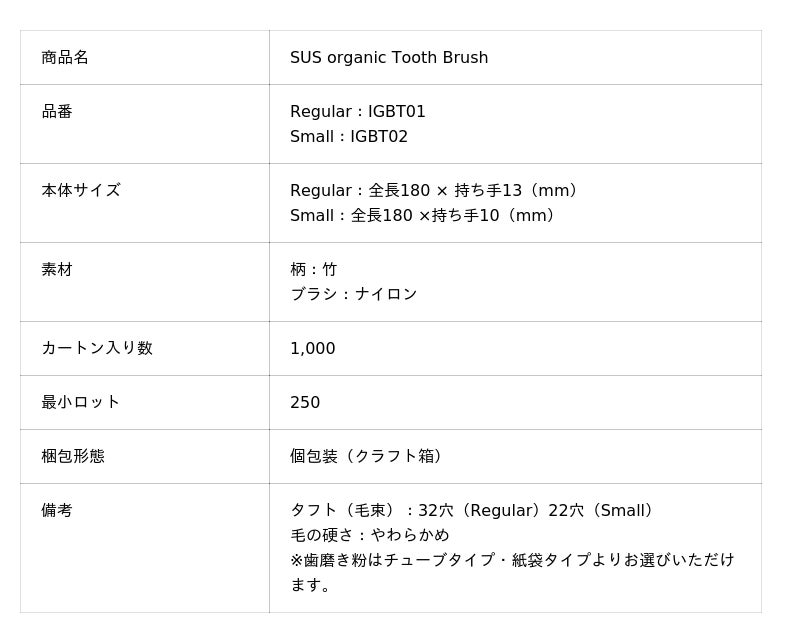・SUS organic Tooth Brush(オーガニック 竹歯ブラシ Regular/Small)
