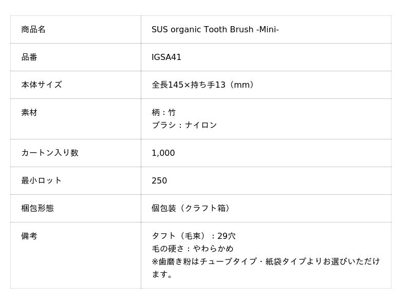 ・SUS organic Tooth Brush -Mini-(竹歯ブラシ ミニタイプ)[IGSA41]