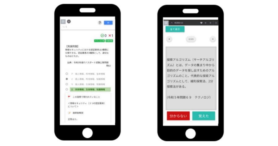 過去の試験問題を基にした演習を中心に短期間での効果的な学習をサポートし、ITパスポート資格の取得や基礎的ITリテラシーの向上を支援します。専門家による解説がいつでもどこでも学習可能です。