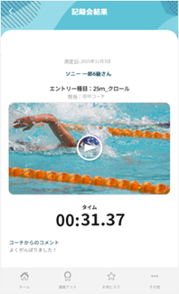 なお、記録された映像やタイムは会員向けのマイページに配信され、日ごろのレッスンとは異なる子どもの成長や成果を映像とともに振り返ることができます。