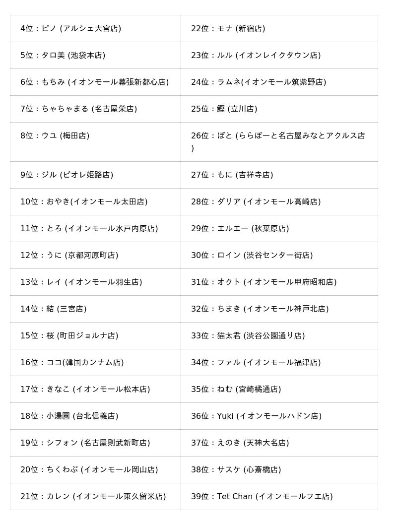 1位:ぽぽ(池袋東口店) 4,192票■猫ちゃんからのコメント