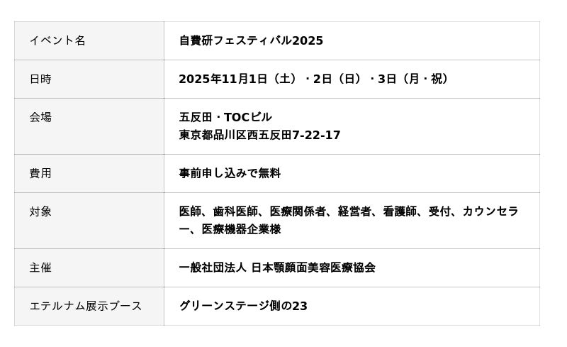 11月1日(土)~3日(祝・月)開催の、自費診療業界最大級イベント『自費研フェスティバル2025』に出展します。