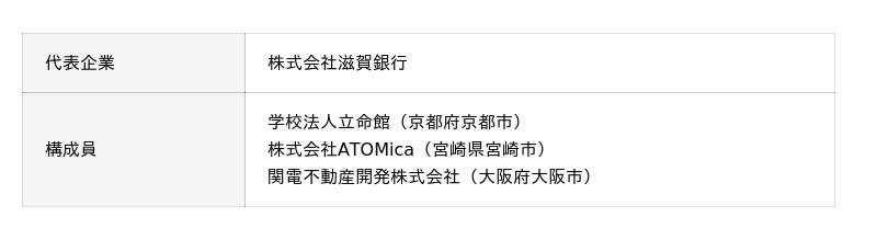地元金融機関である当行を代表企業とし、イノベーション拠点の創出・開発・運営の実績を有する大学・企業で構成しております。