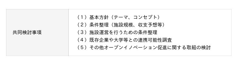 本協定を契機に、官民連携による「イノベーション集積拠点」の創出に向けた事業化検討を開始します。