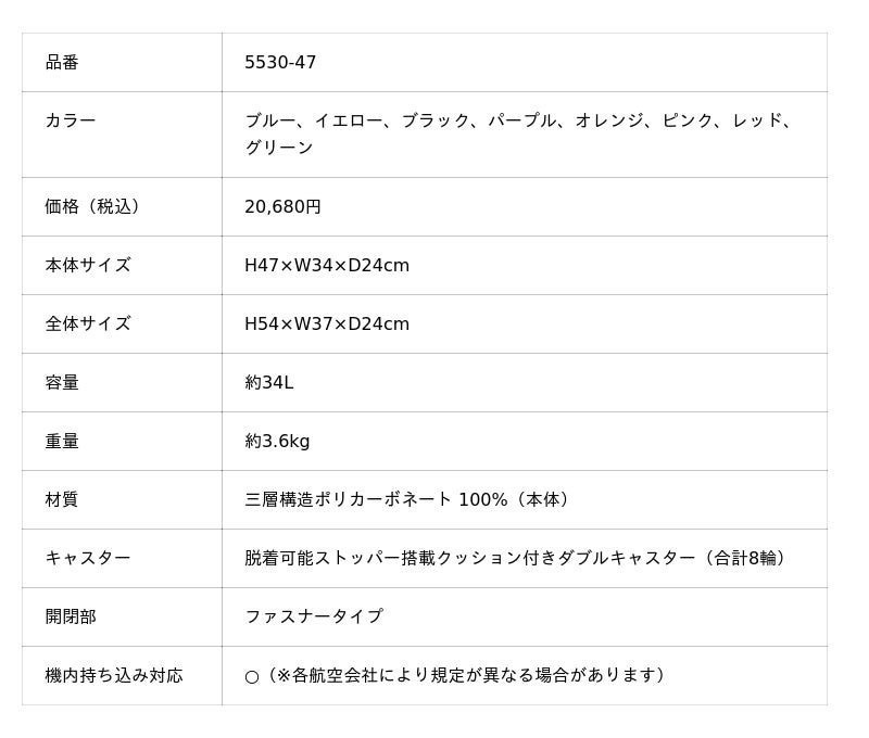 サイズは、機内持ち込みが可能な1泊2日程度の荷物が入る容量34リットルサイズの1サイズ展開。価格は20,680円(税込)です。