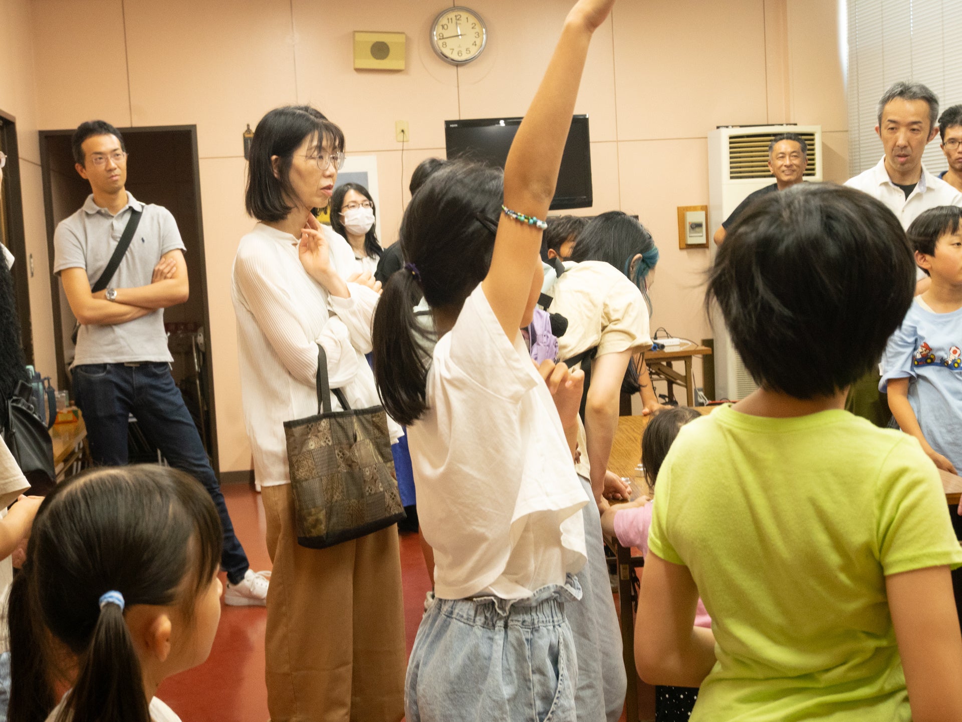 手を挙げて発表する子どもたち。『将来こういう仕事をしたい』との声も。