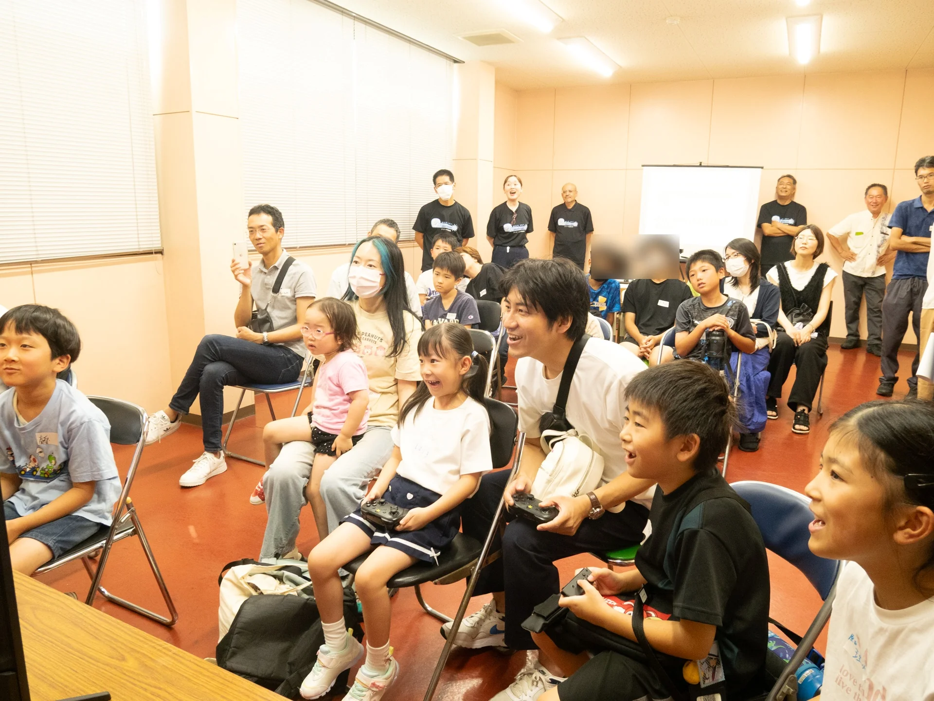 ■ e スポーツから始まる“協力と思考”の体験最初のプログラムでは、協力型ゲーム「PICO PARK」を使用。子どもたちは声を掛け合いながら、相談・作戦・役割分担を自然に行い、チーム全員でゴールを目指しました。会場には拍手と笑顔があふれ、短い時間の中でも「協力して考える」力を発揮しました。