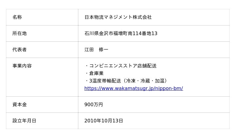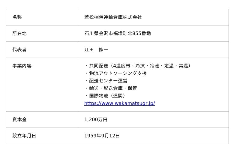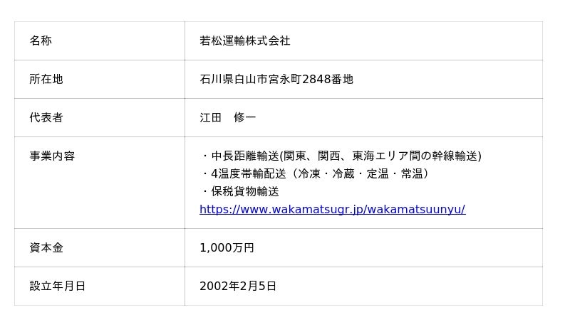 大和ハウスグループの若松梱包運輸倉庫株式会社(本社:金沢市、社長:江田修一)は、2026年1月1日をもって、グループ会社の若松運輸株式会社(本社:石川県白山市、以下「若松運輸」)と株式会社ジャストロジスティクス(本社:金沢市、以下「ジャストロジスティクス」)、日本物流マネジメント株式会社(本社:金沢市、以下「日本物流マネジメント」)を吸収合併することとしましたので、お知らせします。