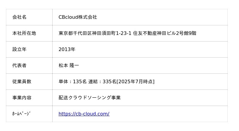CBcloud株式会社は2013年の設立以来、「届けてくれるに、もっと価値を。」のビジョンのもと、物流業界の課題解決に向けた新たな社会インフラの構築を目指し、テクノロジーを駆使したサービスを展開しています。主力サービスである「ピックゴー」は、荷主と配送パートナー(車両・ドライバー)を直接つなぎ、軽貨物個人事業主約7万人が登録する国内最大の配送プラットフォームです。ドライバーの適切な評価制度や24時間365日の配送対応とサポート体制を整備し、高品質なドライバーによるサービスを通じて物流業界が抱える人手不足などの課題解決にも貢献しています。
