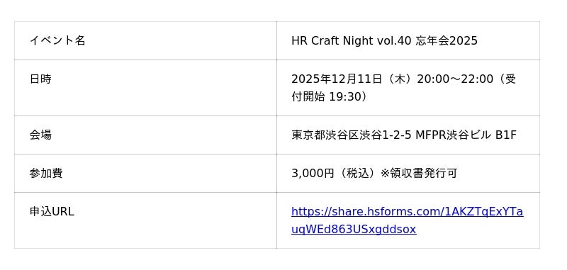 2025年12月11日(木)「HR Craft Night vol.40 忘年会2025」開催決定