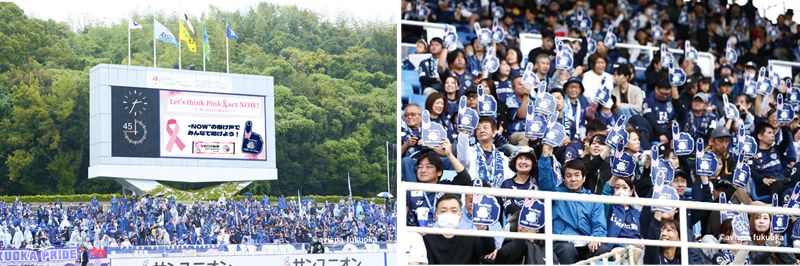 新日本製薬が乳がん啓発イベントをアビスパ福岡の冠試合にて実施~10,000名を超える来場者と乳がん啓発ファンフィンガーを掲げました~