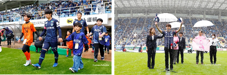 ・アビスパ福岡選手によるピンクの腕章着用での選手出場