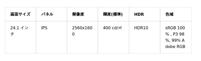 WQXGA(2,560x1,600)解像度、Adobe RGB 99%、sRGB 100%、Display P3/DCI-P3 98%カバー率に加え10bitカラーおよび16bit 3D-LUTを採用し、ディティールまで正確かつ鮮明に表示。さらに、反射を最小限に抑えるノングレアIPSパネル採用で視野角が広く、色調の再現性も高い写真・映像編集向けモデル。