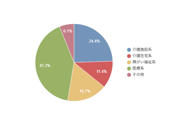 興味分野では「医療系」が41.3%と最も高く、次いで介護施設系が続きます。専門性や安定性を求める傾向が強く、医療・介護の連携強化が重要です。