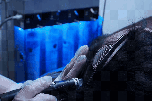 国内で唯一、アメリカFDA(※2)に発毛効果が認められた最先端のAGAレーザー治療。頭皮表面を傷つけることなく毛包を直接刺激する最新の低侵襲レーザー技術を採用。これにより内服薬や外用薬を使用せず安全かつ高い発毛効果を実現。従来の治療法から副作用リスクを大幅に軽減、頭皮へ直接アプローチすることで発毛を促進します。