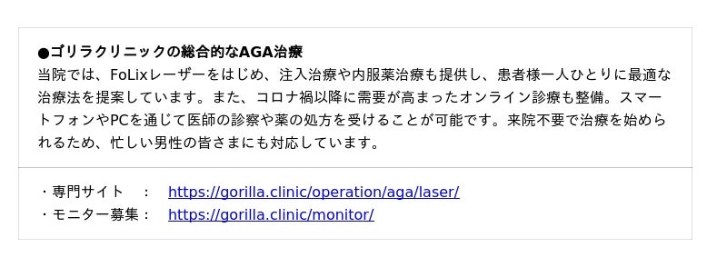 ■男性専門の総合美容クリニック『ゴリラクリニック』(