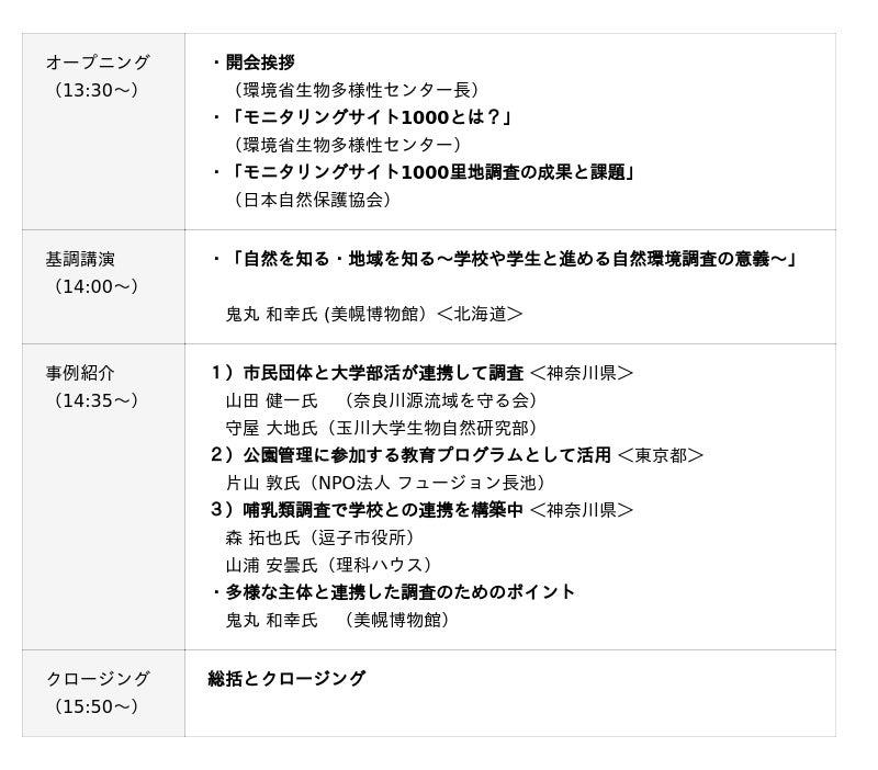 主 催:環境省生物多様性センター・(公財)日本自然保護協会