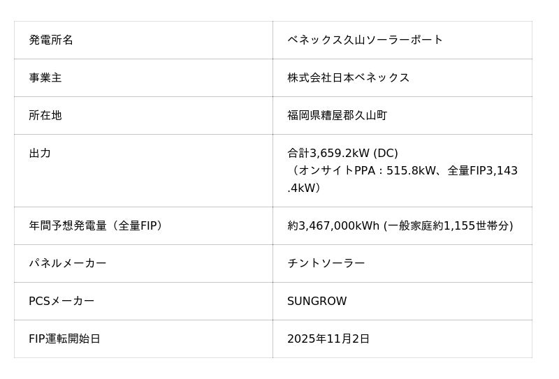 久山久原」の屋根に約3.7MWの太陽光発電所「ベネックス久山ソーラーポート」(以下「本発電所
