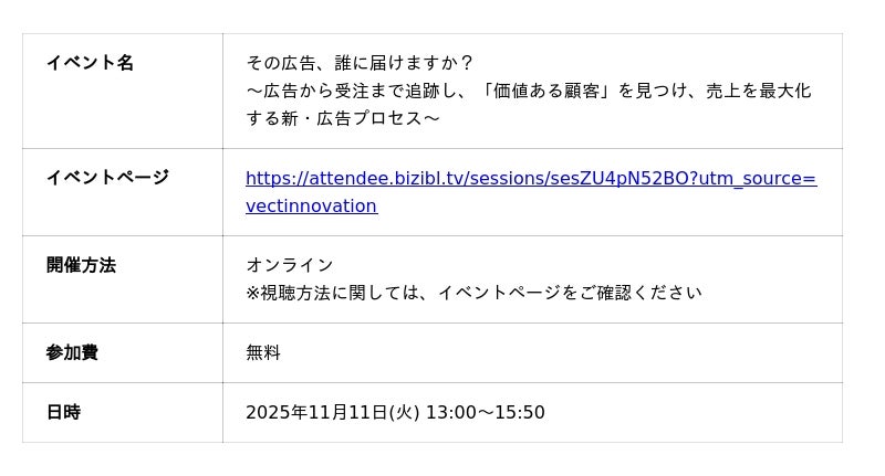「その広告、誰に届けますか?~広告から受注まで追跡し、『価値ある顧客』を見つけ、売上を最大化する新・広告プロセス~」にVECT INNOVATIONが登壇【オンラインカンファレンス】