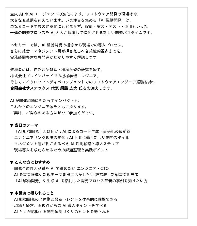 https://visasq.co.jp/seminar/aidrivendevelopment251114?utm_source=prtimes&utm_medium=referral&utm_campaign=seminar_expert_20251114