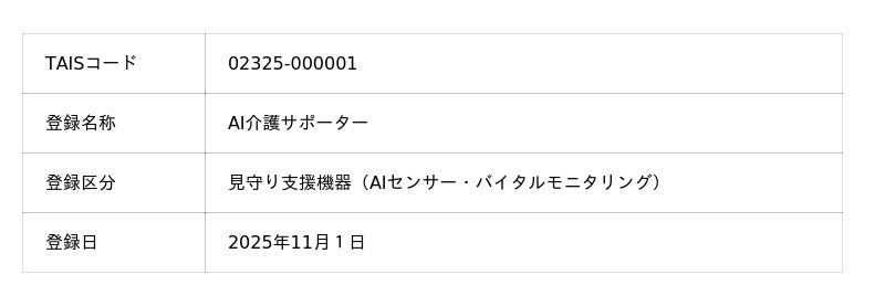 「TAIS登録により、公的な信頼性を得た『AI介護サポーター(R)』は、今後さらに多くの介護・福祉施設、自治体での導入を見込んでいます。当社は、AI技術とデータ活用を通じて『人に寄り添う介護DX』を推進し、安全で持続可能な介護現場の実現を目指します。」