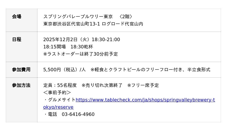 スプリングバレーブルワリー株式会社(社長 井本亜香、以下SVB)は、2025年11月17日(月)より創業10周年特別企画の最後となる 「ENJOY! CRAFT 2025 FINAL フェスタ」を開催します。今回のテーマは「クラフトビールの楽しさ全部載せ!」。10周年にちなみ10個の特別企画をスプリングバレーブルワリー東京(以下SVB東京)とスプリングバレーブルワリー京都(以下SVB京都)両店にて展開します。次の10年もご期待いただけるようなクラフトビールと食の感動体験を提案してまいります。