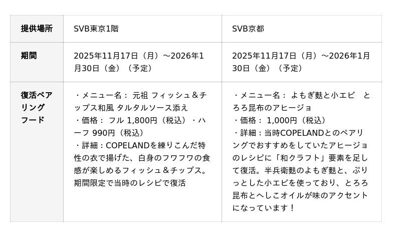 3. 限定復活!SVB創業当時の定番ビール「COPELAND」とペアリングフード