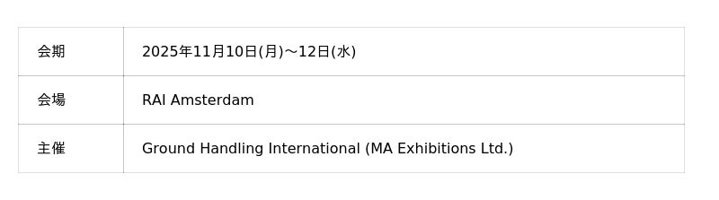 GHI Conferenceは1999年より開催されている、空港グランドハンドリング業界に関する世界最大級の展示会です。2024年の本イベントには、80社以上のGSE(Ground Support Equipment: グランドハンドリング業務に使用する器材の総称)およびITサプライヤーが出展し、60カ国以上から110社以上の航空会社を含む延べ約1,000名の関係者が参加しました。