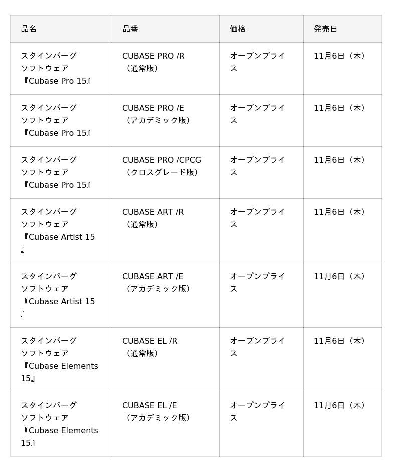 株式会社ヤマハミュージックジャパン(神奈川県横浜市)は、Steinberg Media Technologies GmbH(ドイツ・ハンブルク、以下、スタインバーグ社)が開発した音楽制作用デジタル・オーディオ・ワークステーション(以下DAW)・ソフトウェア『Cubase(キューベース) Pro 15』と、その機能を厳選して搭載したミッドレンジグレード『Cubase Artist 15』、エントリーグレード『Cubase Elements 15』のダウンロード販売を開始しました。