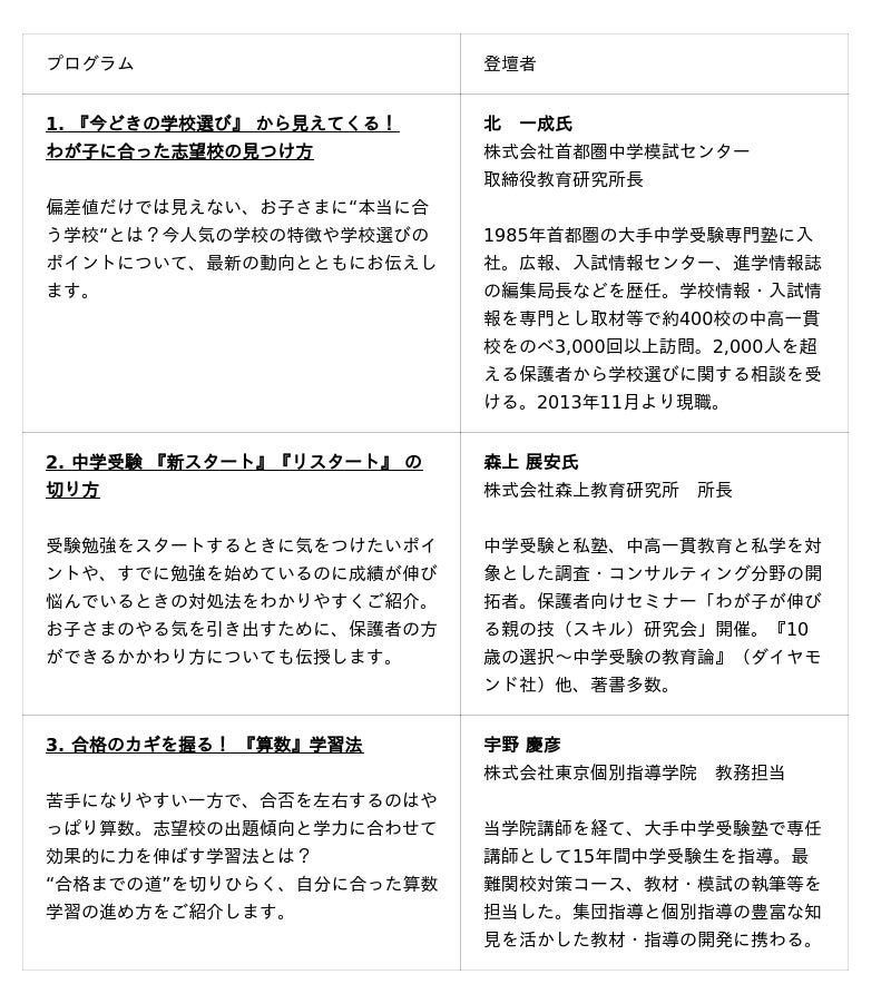 東京個別指導学院では中学受験をお考えの保護者に向けたセミナーを2025年より開始し、ご好評をいただいております。通算4回目となる今回は首都圏の小学3年生~5年生までの保護者を対象に、『今どきの学校選び』から見えてくる!わが子に合った志望校の見つけ方、中学受験『新スタート』『リスタート』の切り方、合格のカギを握る!『算数』学習法を中学受験の専門家がくわしく解説します。