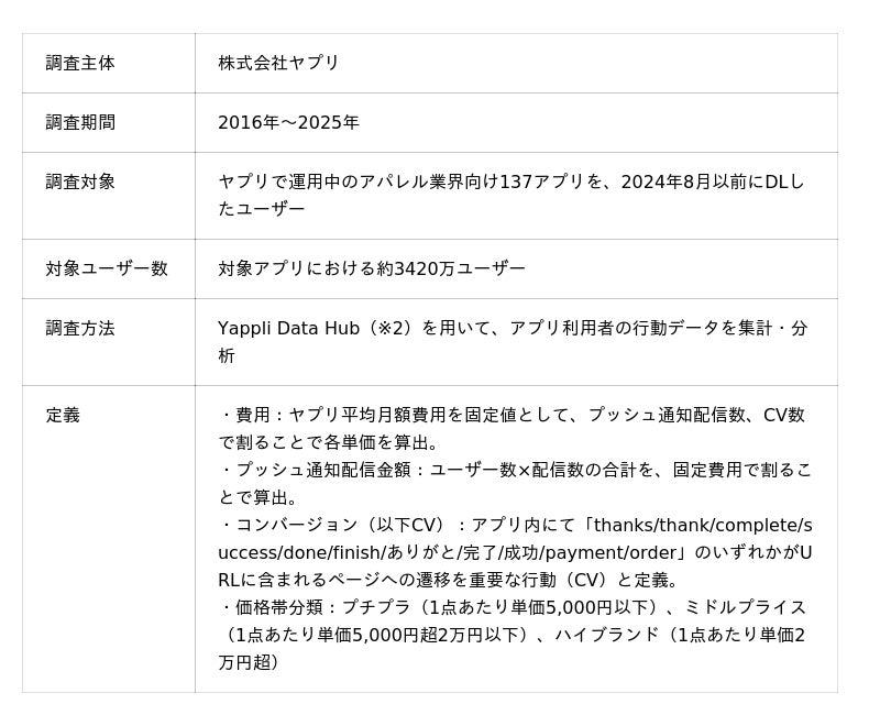 本調査では、アプリプラットフォーム「Yappli」を活用しているアパレル企業のデータを定量的に分析し、長期的なユーザーとの関係構築における指標を明らかにしました。