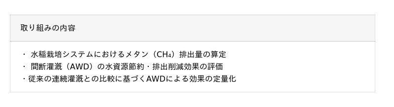 中でもインドネシアは、水田約1, 000万haでカーボンクレジットを創出した場合、約428億円のポテンシャルがあると試算されます(※2)。こうした状況を踏まえ、Green Carbonは日本・インドネシア間のJCM(二国間クレジットメカニズム)やインドネシアの新興カーボン市場の仕組みを活用し、西ジャワ州におけるAWD(間断灌漑)技術を活用した水田からのメタン排出削減プロジェクトに着手しました。