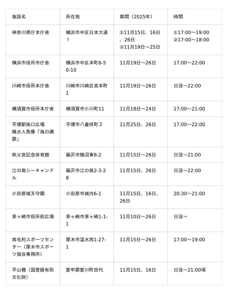 東京2025デフリンピック(11月15日~26日)の開催を目前に控え、神奈川県では県ゆかりの選手動画(総集編)を電車内ビジョンで放映します。また、大会期間中に庁舎のライトアップを実施します。