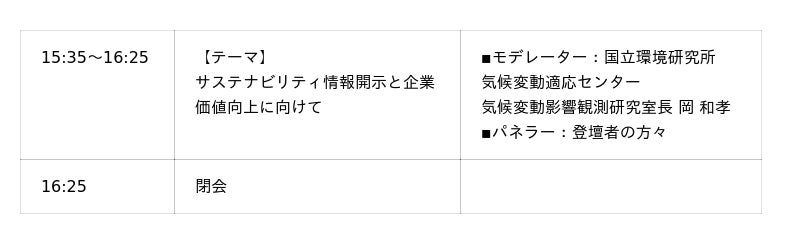 なお、国立環境研究所は、上記省庁と「気候変動リスク産官学連携ネットワーク」を主催し、主に気候変動やその影響の予測、気候関連情報開示支援等のコンサルティングサービスを行っている企業との意見交換の実施、協働を進めており、本シンポジウムはその活動の一環となります。
