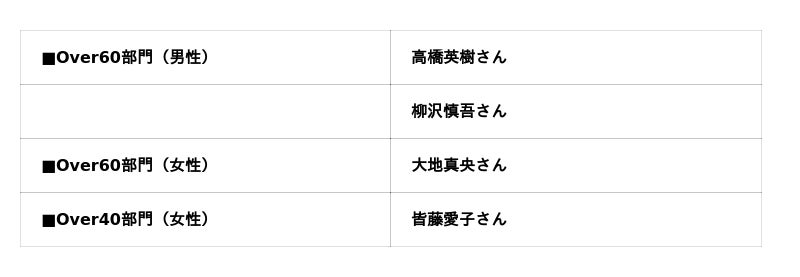 記念すべき第1回目はOver60部門は高橋英樹さん、大地真央さん、柳沢慎吾さん、Over40部門は皆藤愛子さんが受賞!