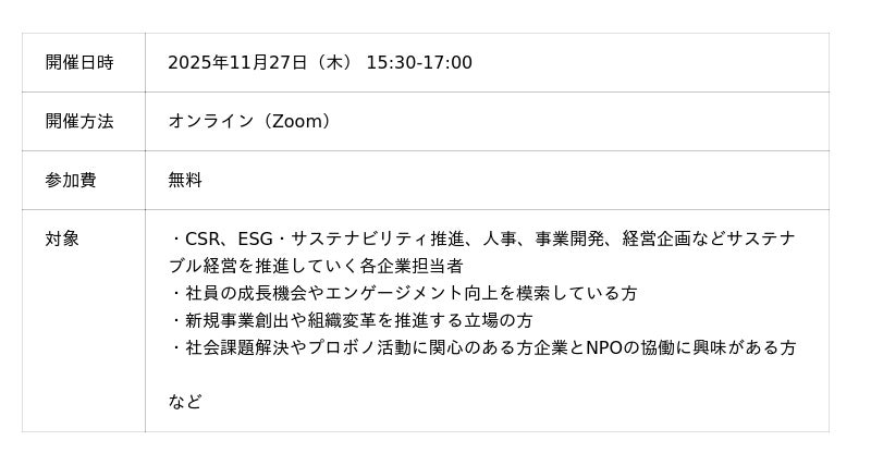 「企業にとってのプロボノの価値とインパクト」開催概要