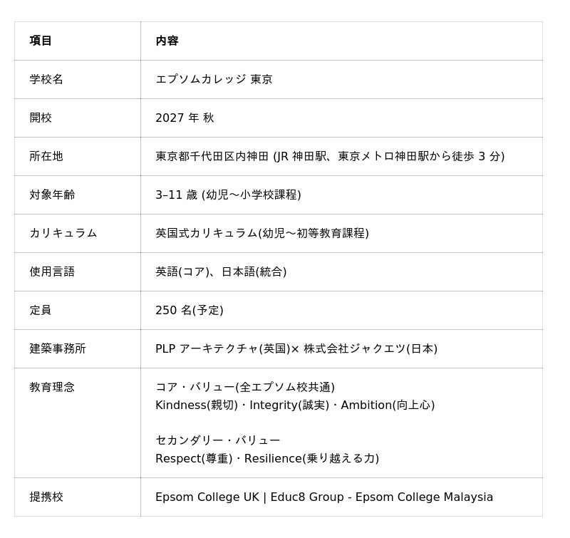 エプソムカレッジ 東京、2027年秋に東京・神田で開校予定