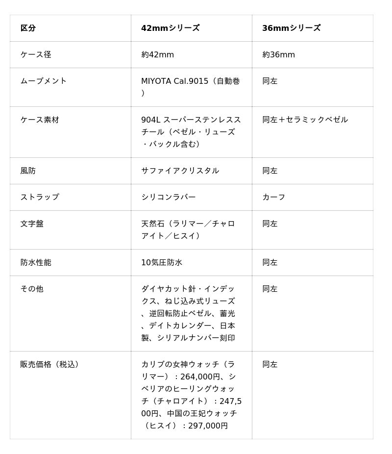 腕時計の輸入販売を行う、株式会社ミスズ(本社:東京都杉並区 代表取締役社長:半田晴久)は、同社の日本製腕時計ブランド「The Nishiogi(ザ・ニシオギ)」より、天然石を文字盤に採用した新作コレクション「カリブの女神ウォッチ(ラリマー)」「シベリアのヒーリングウォッチ(チャロアイト)」「中国の王妃ウォッチ(ヒスイ)」の3種類を同時発売します。