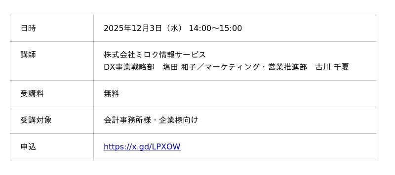 【参加受付中】―会計事務所様・企業様向け― ミロク情報サービス オンラインセミナーのご案内