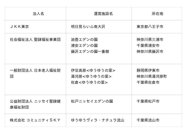 ◆参加法人と管理・運営する施設