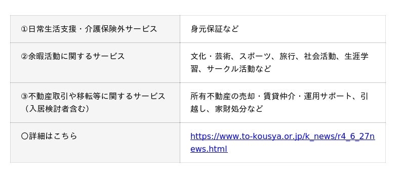 明日見らいふ南大沢では、入居者及び入居検討者向けサービスとして、個別契約によるサポートやサービスを提供する業務連携事業者の募集を行っています。