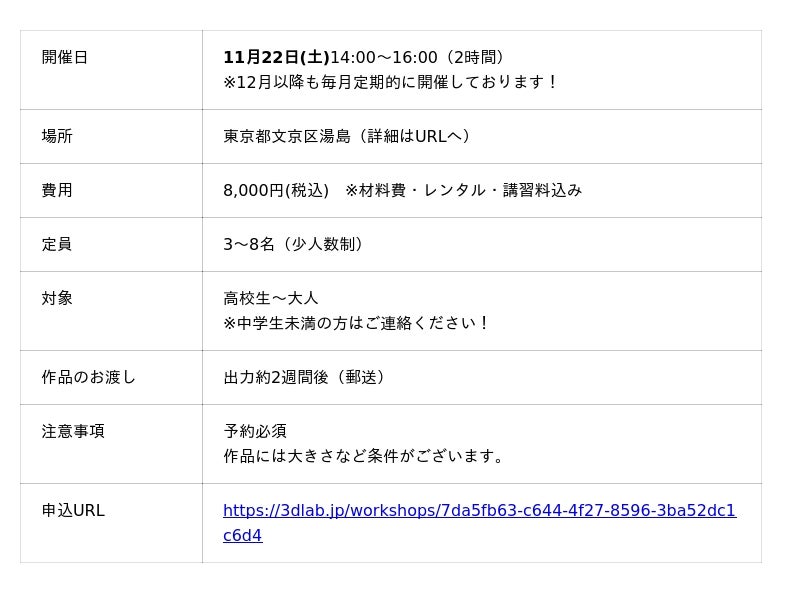 https://3dlab.jp/workshops/7da5fb63-c644-4f27-8596-3ba52dc1c6d4